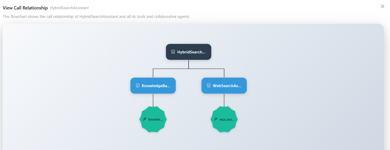 View the collaborative agents/tools used by the agent, displayed in a tree diagram to clearly see the agent call relationships.