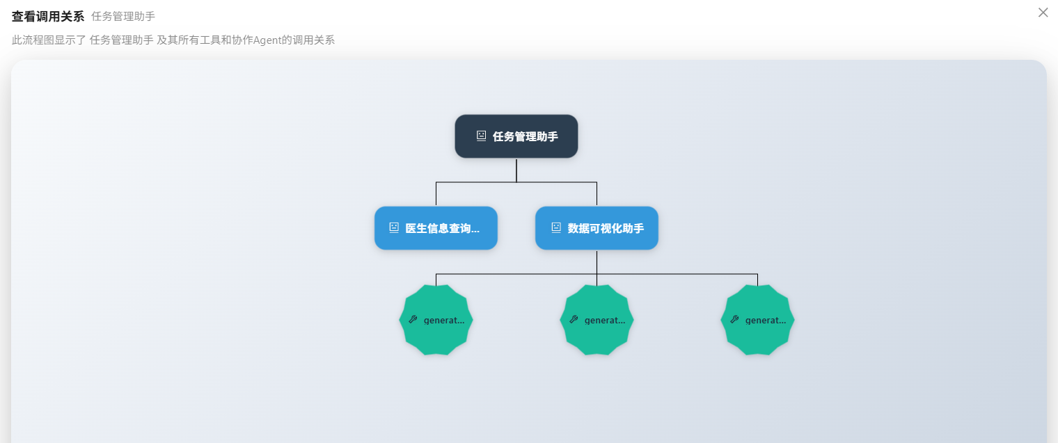 查看智能体所使用的协作智能体/工具,以树状图形式明晰查看智能体调用关系。